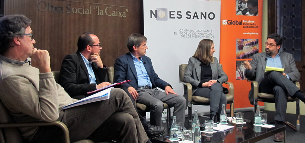 Con este debate se presentaba en Barcelona la campaña No Es Sano, una alianza de más de una decena de organizaciones del ámbito de la salud -entre las que se encuentra ISGlobal-, que busca una reforma del actual sistema de investigación biomédica que asegure el acceso universal a los medicamentos.